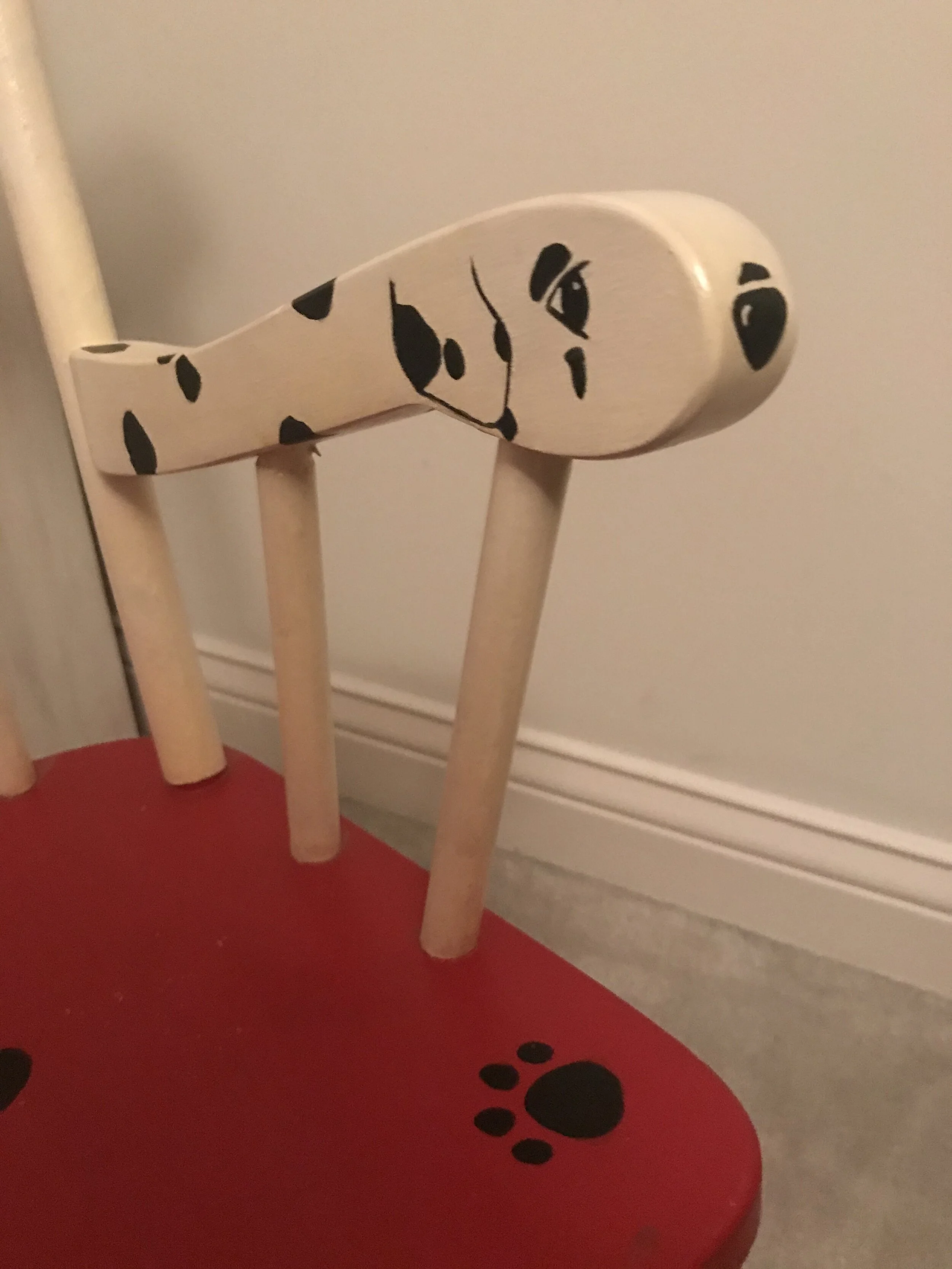 Children’s wooden chair hand-painted with dalmatian theme.